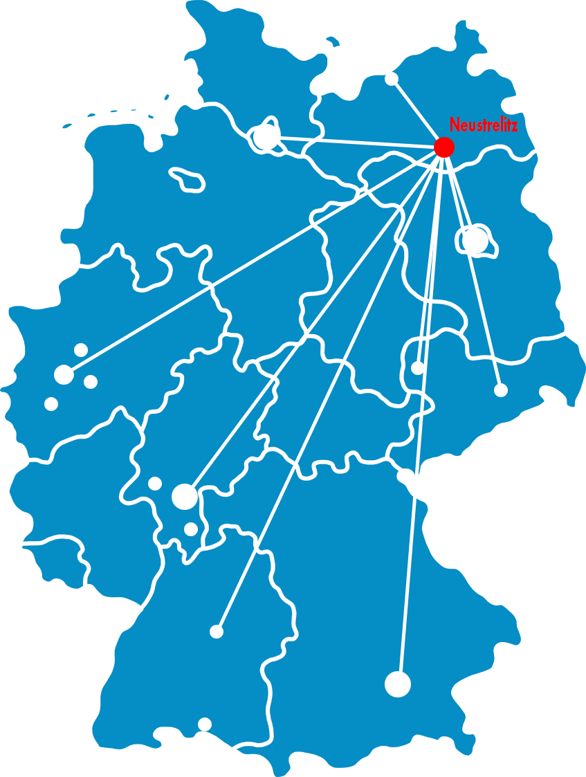 Mit unserem in der Mecklenburgischen Seenplatte zentral gelegenen Standort in Neustrelitz und unseren kontinuierlich wachsenden Lagerflächen sorgen wir dafür, dass unsere Produkte pünktlich und präzise an Kunden ausgeliefert werden. Die strategisch günstige Lage zwischen Berlin und der Ostseeküste und die Nähe zu wichtigen Verkehrsknotenpunkten erleichtert den Zugang zu großen Ballungsräumen und Märkten. Damit verschaffen wir unseren Kunden einen bedeutenden Wettbewerbsvorteil und eine effiziente Abwicklung des Warenverkehrs. Unser Service ist für kleine und mittelständische Unternehmen und Onlineshops ein idealer und effizienter Begleiter.